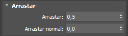 - Exibe a implementação de Arrastar que aplica uma força para emular arraste, puxando velocidades de partículas individuais gradualmente para a velocidade do campo. O efeito causado é semelhante ao do vento. Isso acelera as partículas que se movem com velocidade inferior à do campo e desacelera aquelas que se movem com mais rapidez, ao contrário das outras opções que sempre adicionam velocidade às partículas.