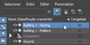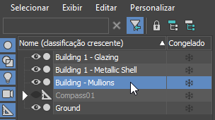 - No painel do Scene Explorer, clique para selecionar o objeto Edifício 1 - Vidraça.