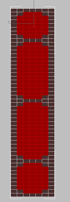 - Ctrl+ clique + arraste para selecionar os polígonos restantes em um bloco 5x14 e, a seguir, um bloco 5x17, como mostra a próxima ilustração. Use a técnica da tecla Alt pressionada para remover polígonos dos cantos dos padrões da janela e o arco da entrada.