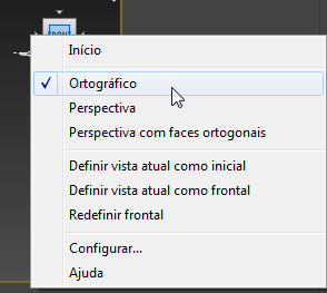 - Na Vista em perspectiva, clique em Frontal no ViewCube, clique com o botão direito do mouse no ViewCube e, no menu pop-up, escolha Ortográfico.
