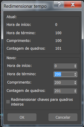 - Na caixa de diálogo para redimensionar o tempo, alterar a hora de fim para 200e, a seguir, clique em OK.
