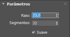 implementação de Parâmetros, altere a configuração de Raio para 25 e pressione Enter.