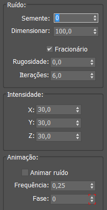 - No grupo de Ruído, ative Fracionário e, no grupo Força, defina X, Y e Z como 30.0.