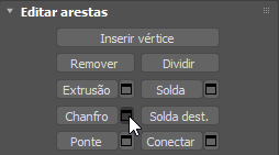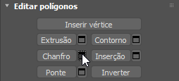 3ds Max Exibe os controles do Caddy para a ferramenta Chamfer.