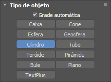 (geometria), o tipo de objeto suspensa, clique para ativar o cilindro. Também, ative a caixa de seleção AutoGrid.