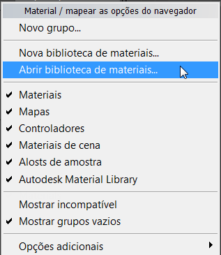 Agora uma seção para a biblioteca aparece no Navegador de materiais/mapas.