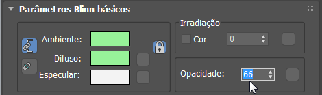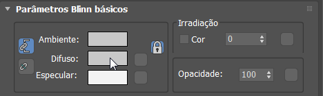 "Blinn”, nomeado em homenagem ao pioneiro da computação gráfica James Blinn, é o padrão de tipo Sombreador utilizado pelo material Padrão. Um sombreador determina como o material interage com a luz. E “Difusa " se refere ao material básico de cor. É possível encontrar mais informações sobre sombreadores e sobre os materiais em geral da Ajuda do 3ds Max.
