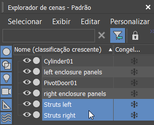 Os painéis de vidro do gabinete esquerdo alteram a sua aparência na viewport.