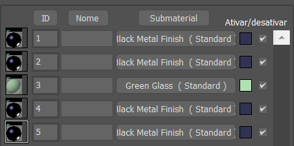 Na implementação dos parâmetros básicos multi/subobjeto, é possível clicar e acessar cada material individual.