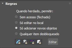 Isso acontece porque o objeto está bloqueado como consequência do uso da regra Adicionar somente novos objetos. Quando um objeto está bloqueado, não é possível selecioná-lo e, portanto, é claro que você não conseguirá transformá-lo diretamente. No entanto, você pode transformá-lo por meio do contêiner.