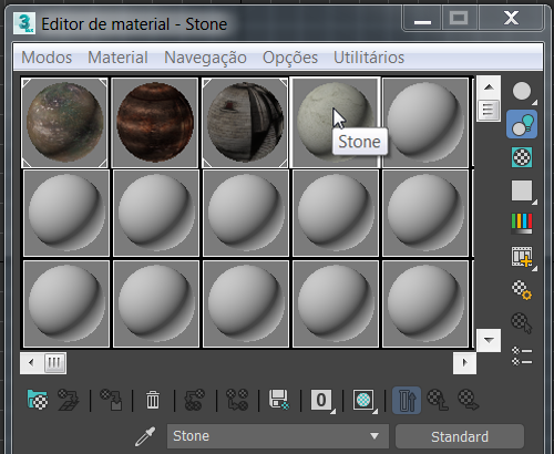 Se no início você não pode ver o compartimento de amostra para o material pedra, clique com o botão direito em um dos compartimentos de amostra e selecione Janelas de Amostra 5 X 3 para exibir mais compartimentos.
