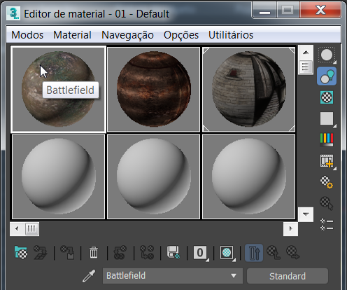 Observe que o nome Campo de batalha aparece no campo de Nome de Material abaixo dos compartimentos de amostra.