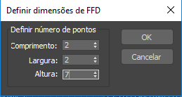 - Na caixa de diálogo Definir dimensões de FFD, defina os parâmetros como abaixo, para definir o número de pontos de controle para a retícula utilizada para deformar a estrutura: