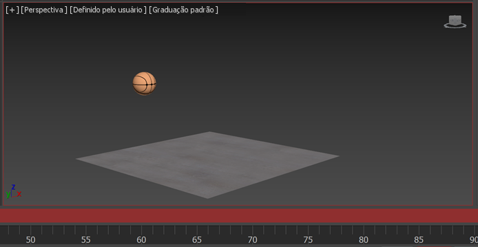 Se você arrastar o controle deslizante de tempo entre o quadro 0 e o quadro 15, verá que o 3ds Max animou a queda da bola de basquete. Caixas vermelhas aparecem na linha de tempo tanto no quadro 0 quanto no quadro 15: representam as chaves que o 3ds Max criou quando você moveu a esfera.