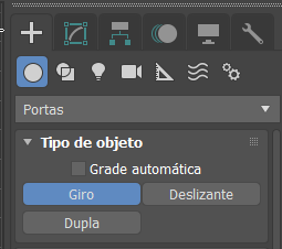 painel Criar, clique na seta na lista suspensa e selecione Portas. Na implementação Tipo de objeto, clique para ativar o ponto de giro.