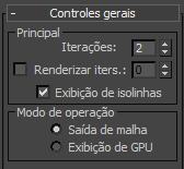 Se a opção Faces com arestas estiver ativada, é possível ver a estrutura geométrica subjacente do objeto de polígono editável original. Para ver a subdivisão real resultante do OpenSubdiv, desative a exibição da isolinha, também nos controles gerais lançamento.