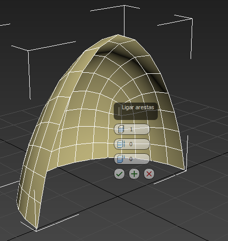 Novamente, o 3ds Max exibe os controles de Caddy para a ferramenta Conectar.