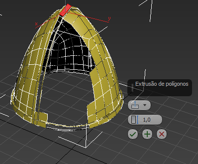 O 3ds Max exibe os controles de Caddy para a ferramenta de Extrusão.