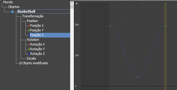 janela Controlador (a lista de objetos e trilhas à esquerda), clique na trilha da Posição Z para exibir a curva para apenas essa trilha.