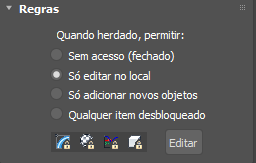 De acordo com o estado do container herdado, se ele está aberto ou fechado, o painel Modificar mostra uma das duas caixas de expansão, Conteúdo local ou Conteúdo herdado, mas nunca ambas.