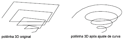 Ajusta uma curva spline 3D a seus pontos de controle. A variável de sistema SPLFRAME controla a precisão e a exibição dos pontos de controle para 3D B-spline, cujas curvas podem ser aproximadas apenas por segmentos de linha. Valores negativos para segmentos spline são ignorados.