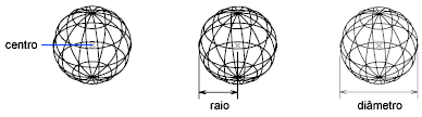 Define a circunferência da esfera ao especificar dois pontos em qualquer lugar do espaço 3D. O plano da circunferência é definido pelo valor Z do primeiro ponto.