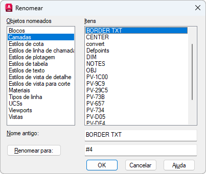 Altera os nomes atribuídos aos objetos nomeados, como camadas e estilos de cota.