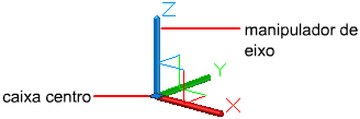 Para mover objetos e subobjetos 3D, clique e arraste a alça 3D para qualquer lugar no espaço 3D. Este local (indicado pela caixa central [ou alça base] da alça) define o ponto base para o movimento e temporariamente altera a posição do UCS enquanto você move os objetos selecionados.