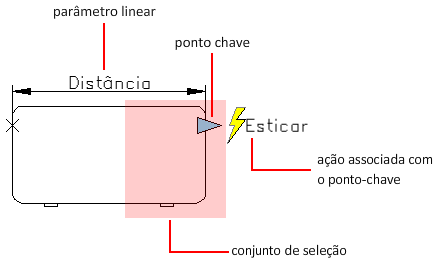 As ações definem como a geometria de uma referência de bloco dinâmico será movida ou alterada quando as alças são manipuladas.