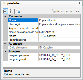 O til (~) e o ponto de exclamação seguidos por um ponto (!.) são colocados no início da legenda do comando Copiar vínculo na propriedade Nome do painel Propriedades. O seguinte item é o resultado de Copiar link, acinzentado e marcado, no menu Editar.