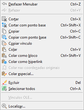 A forma como um item de menu é exibido indica a sua disponibilidade no programa.