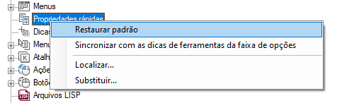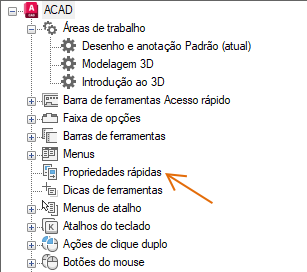 - Na guia Personalizar interface do usuário, no painel Personalizações em <nome do arquivo>, selecione Propriedades rápidas.