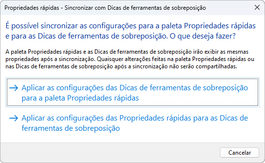 Para sincronizar as Propriedades rápidas com dicas de ferramentas de sobreposição