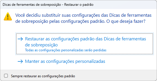 Se um objeto estiver selecionado, as propriedades desse tipo de objeto serão exibidas em uma dica de ferramenta de sobreposição quando o cursor passar sobre um objeto do mesmo tipo. Limpe a marca de seleção ao lado de um tipo de objeto para remover o suporte para esse tipo de objeto das dicas de ferramentas de sobreposição.
