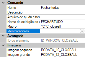 2. No painel Propriedades, selecione o campo Identificadores e clique no botão [].