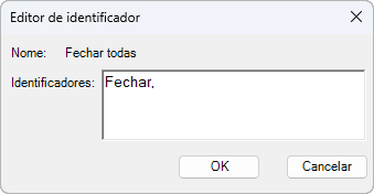 3. Na caixa de diálogo Editor de identificadores, na caixa Identificadores, insira o texto que representa o identificador do comando.