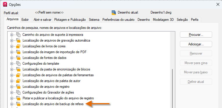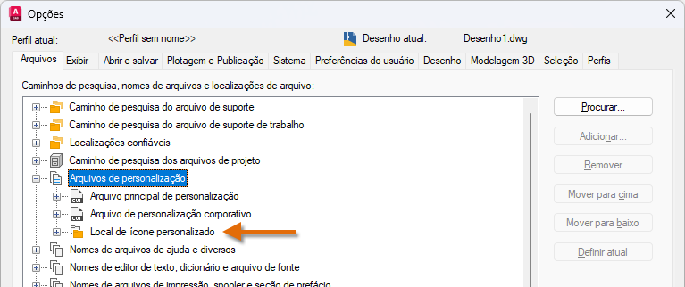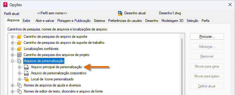 As alterações feitas no perfil de usuário são armazenadas no Registro do Windows e são migradas. Nota: Não está disponível no AutoCAD LT.
