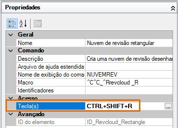 As teclas de atalho são definidas em um arquivo de personalização (CUIx). Neste exemplo, você definirá uma tecla de atalho para executar o comando NUVEMREV com a opção Retangular.