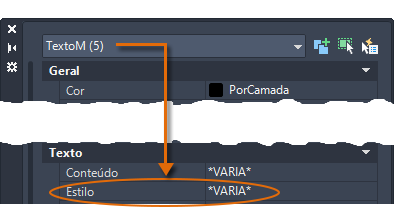Dica: É possível usar a paleta Propriedades para controlar o estilo de texto utilizado para um ou mais objetos de texto multilinha. Por exemplo, após selecionar cinco notas que usam diferentes estilos, clique na coluna Estilo e selecione um estilo na lista.