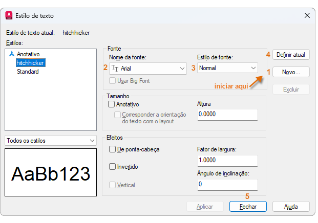 Dica: Salve todos os estilos de texto novos ou alterados nos arquivos de template de seu desenho. Isso permitirá poupar bastante tempo ao torná-los disponíveis em todos os desenhos novos.