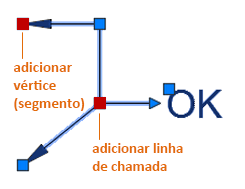 Os menus de alça aparecem quando você passa o cursor sobre as alças da linha de chamada e ponta de seta. Por meio desses menus, é possível adicionar segmentos de linha de chamada ou linhas de chamada adicionais.