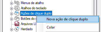 - Na guia Personalizar, no painel Personalizações em <nome do arquivo>, clique com o botão direito do mouse no nó Ações de clique duplo. Clique em Nova ação de clique duplo.