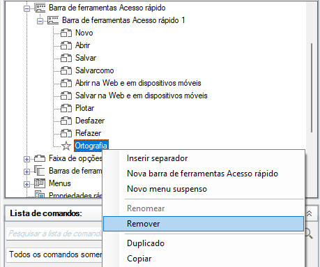 - Clique com o botão direito do mouse no comando ou no controle que deseja remover e clique em Remover.