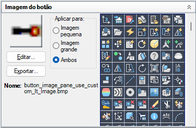 Selecione uma imagem na lista. O nome da imagem será atribuído à propriedade Imagem Pequena, à propriedade Imagem grande ou a ambas as propriedades do comando selecionado.