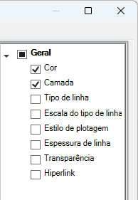 Se um tipo de objeto estiver marcado, as propriedades desse tipo de objeto são exibidas na paleta Propriedades rápidas quando um objeto do mesmo tipo estiver selecionado e quando QPMODE estiver definida como 2 e PICKFIRST estiver ativada. Limpe a marca de seleção junto a um tipo de objeto para remover o tipo de objeto selecionado da paleta Propriedades rápidas.