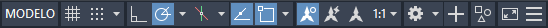 A barra de status fornece acesso rápido a algumas das ajudas e ferramentas de desenho mais usadas. Esta é a barra de status padrão.