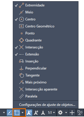 | Snap a objeto | Ativa e desativa o snap a objeto. |