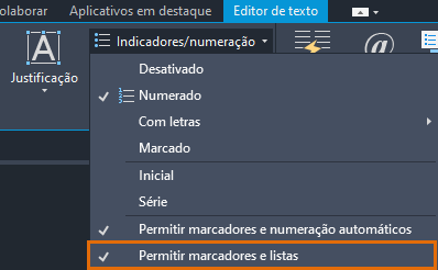 Nota: A formatação de lista somente estará disponível quando a opção Permitir marcadores e listas estiver selecionada.