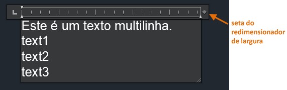 Especifique os cantos opostos de uma caixa delimitadora para definir a largura do objeto de texto de múltiplas linhas.