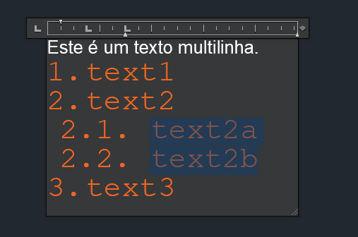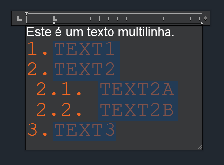 Nota: Alguns textos podem ser difíceis de ler quando são muito pequenos, muito grandes ou são rotacionados. Ao editar texto de múltiplas linhas, o AutoCAD exibe temporariamente o texto na horizontal e em um tamanho legível para que você possa ler e modificar com facilidade o texto de múltiplas linhas. (Variável de sistema MTEXTFIXED)